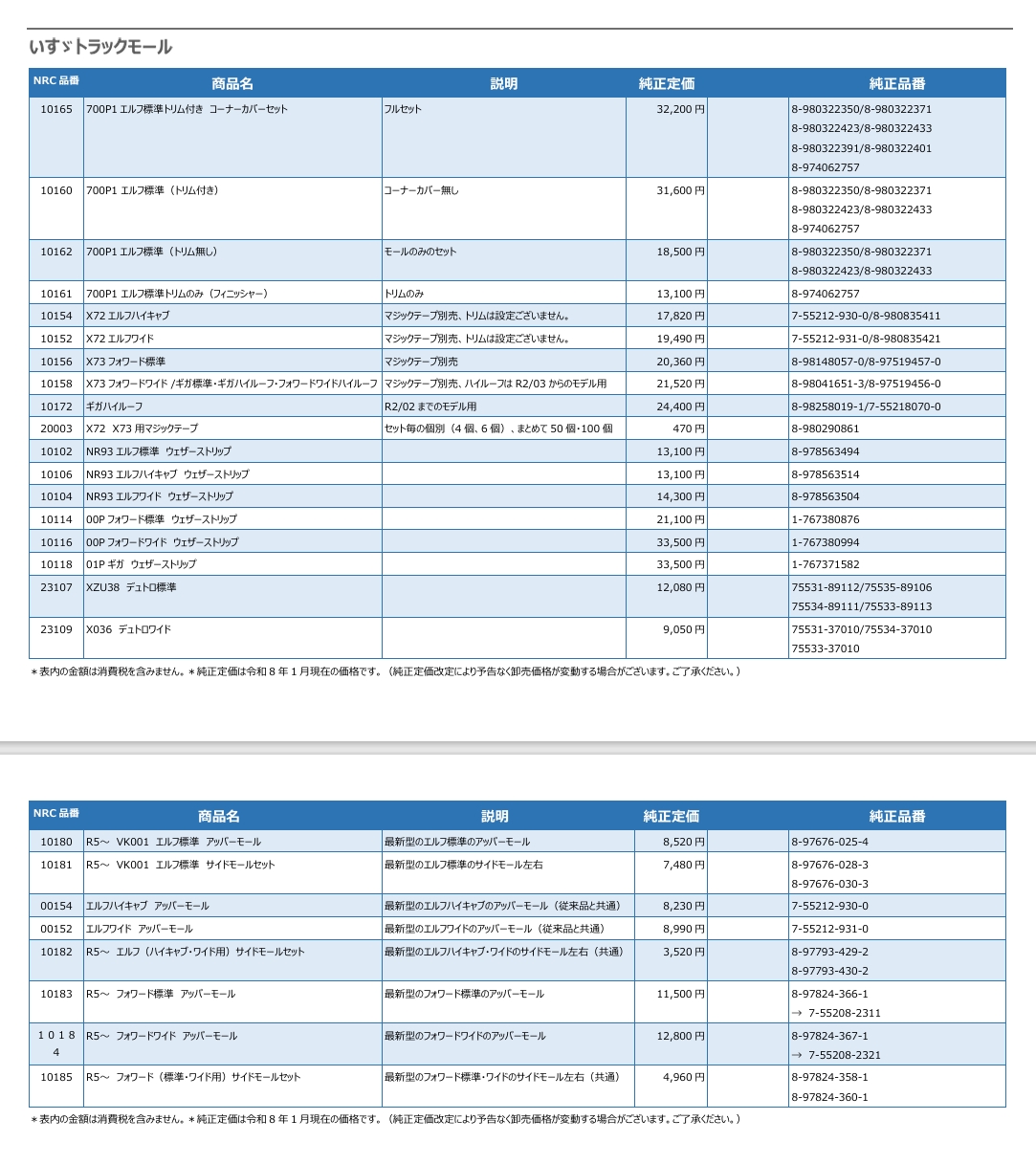 トラック用モール・ウェザーストリップ一覧表ダウンロードはこちら